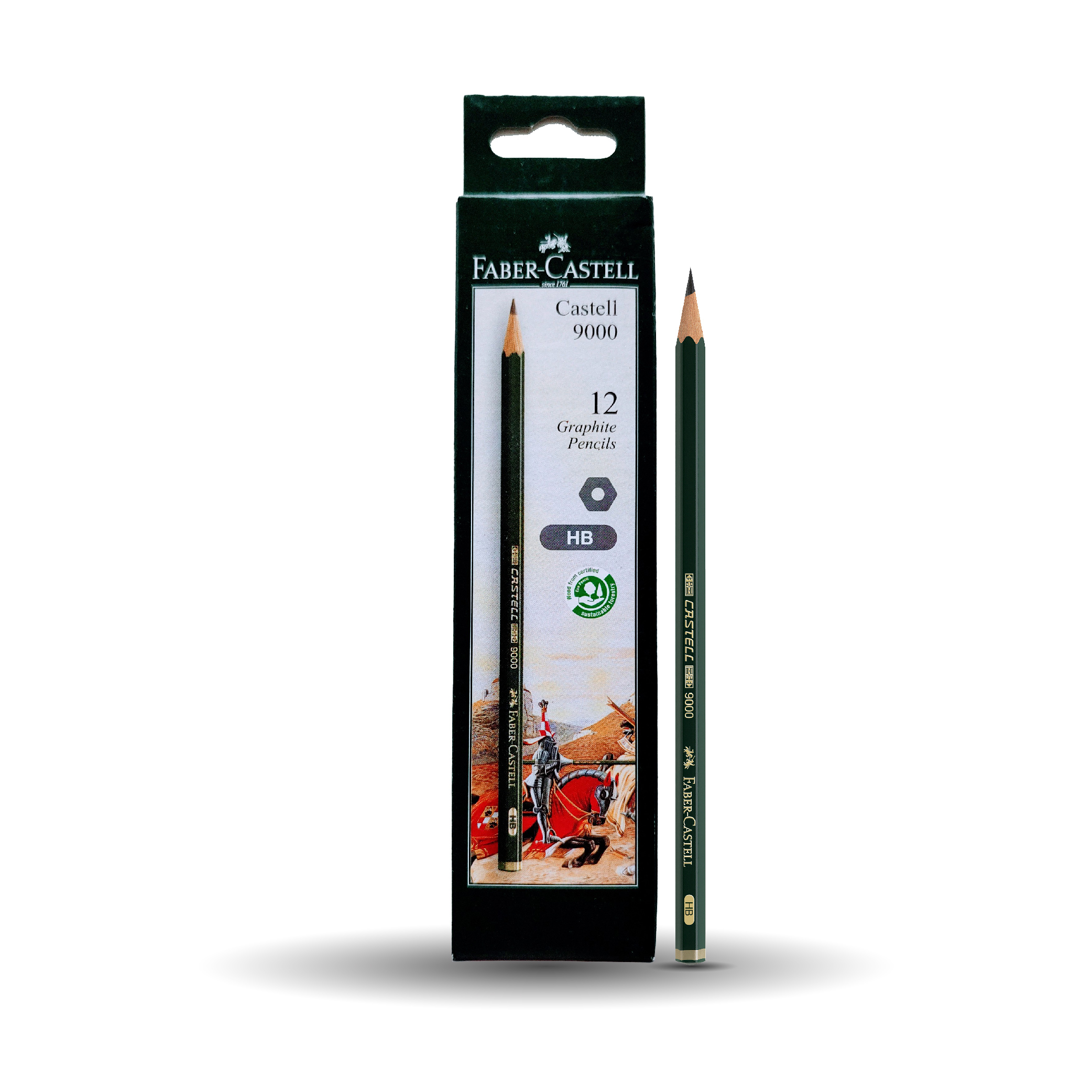 Castell 9000 – a genuinely classic pencil – was launched by Count Alexander von Faber-Castell in 1905. Its quality and finely graduated degrees of hardness have made it a firm favourite with artists and illustrators. Its lead is fully bonded with the wood surround and is therefore particularly break-resistant. The Castell 9000 is available in 16 different degrees of hardness, making it the ideal pencil for all technical and artistic applications.