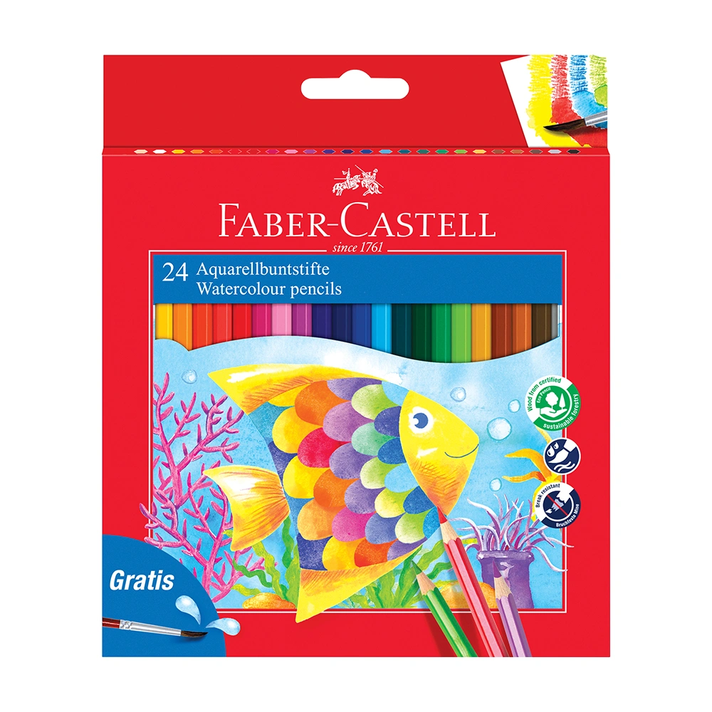7. 24 brilliant colours in an attractive stand-up cardboard case